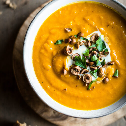 Velouté de potimarron rôti & noisettes torréfiées