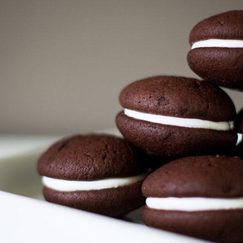 - Garnir les whoopies pies de ce fourrage à l’aide d’une poche à douille munie d’une douille ronde. Ne pas hésiter à les fourrer plus que sur mes photos si vous voulez vraiment avoir le goût du marshmallow.